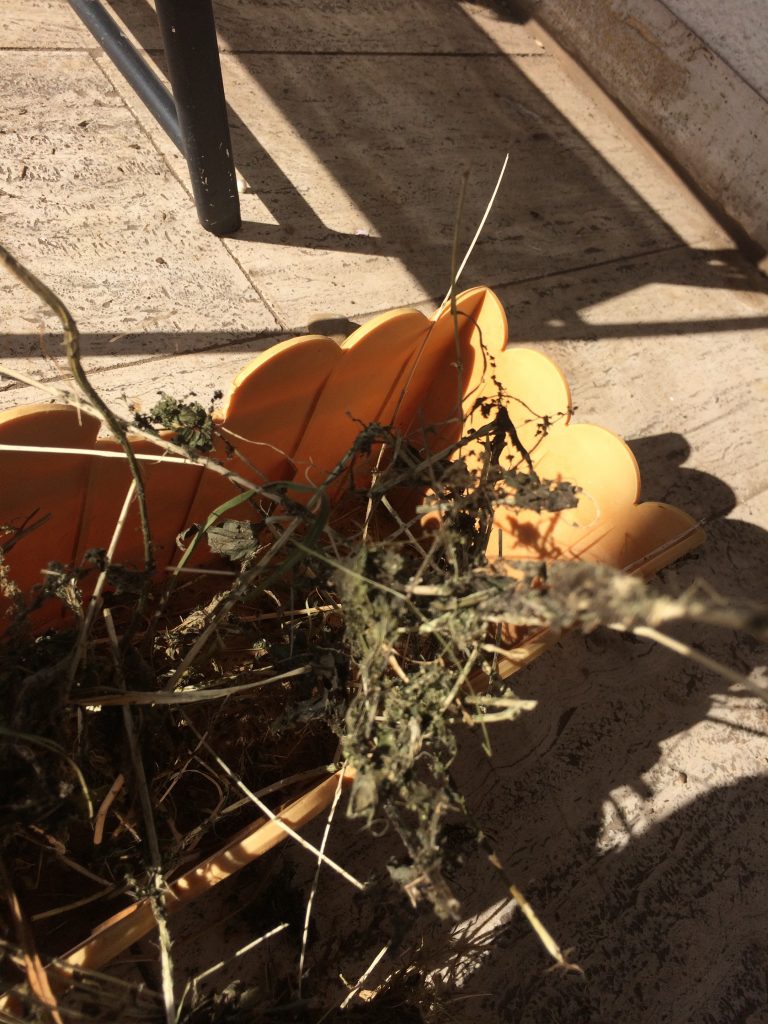 The first step is to collect the stinging nettle plants! Fortunately, where we lived in Germany, they grew rampantly in our garden, around our little pond, and in the compost heap. Here’s what stinging nettle looks like when it’s still growing.
