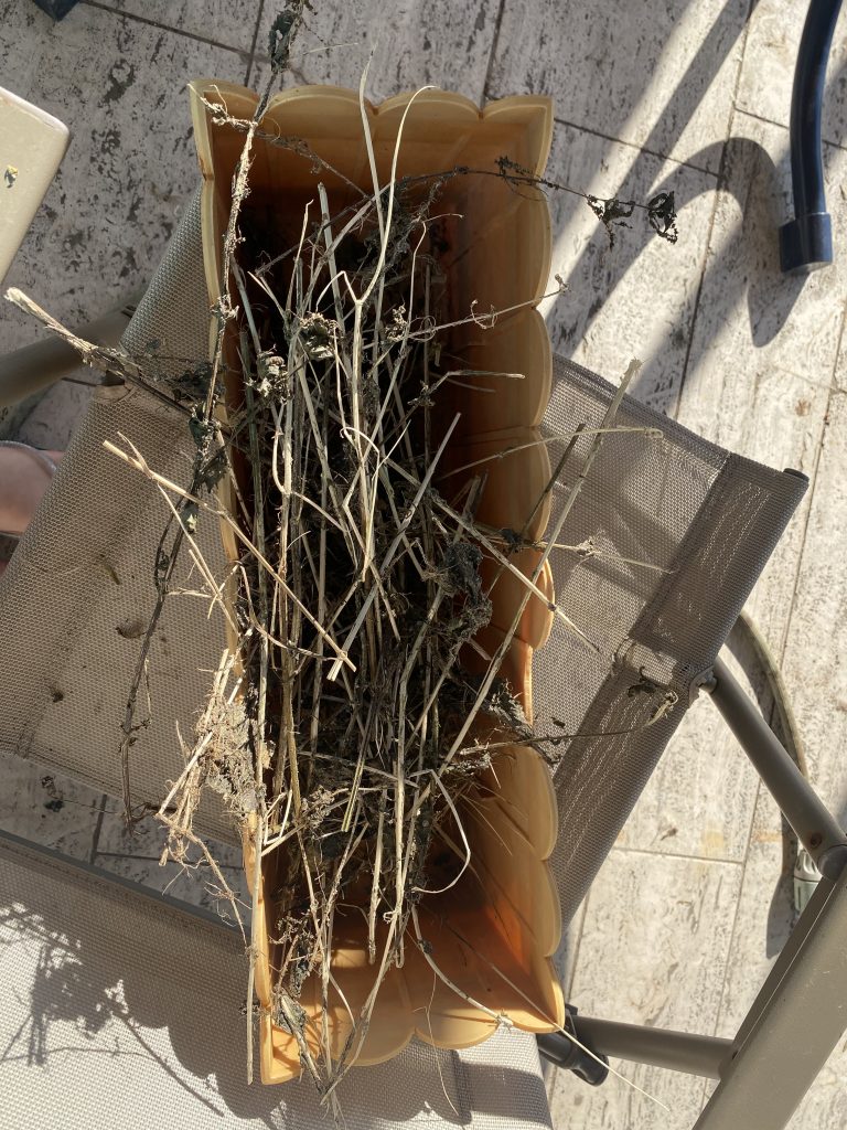 After they soaked, my daughter left them out to dry. Once they were completely dry and brittle, it was time to break them open to find nettle fiber!